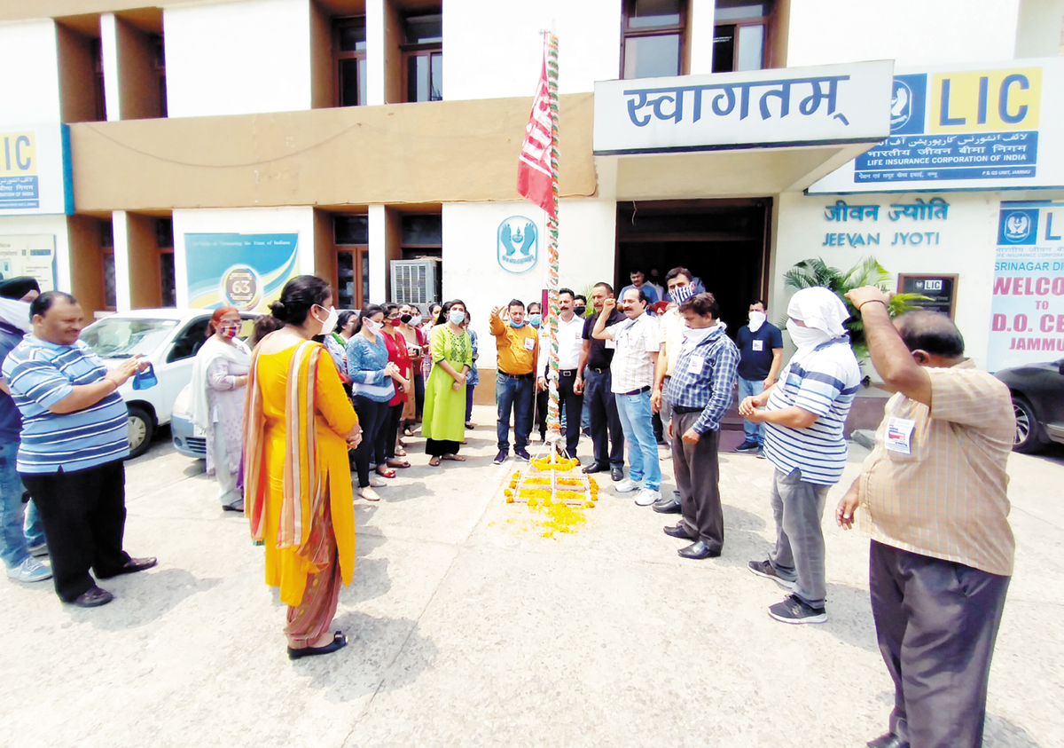 LIC employees celebrating foundation day of AIIEA in Jammu. By Daily Excelsior - July 1, 2020 Share FacebookTwitterWhatsAppPinterestLinkedinCopy URLTelegramEmailTumblrReddItPrintKoo LIC employees celebrating foundation day of AIIEA in Jammu. LIC employees celebrating foundation day of AIIEA in Jammu. Follow our WhatsApp channel