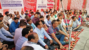 JAMMU, Mar 28: LIC Class-I officers under the banner of the Federation of LIC Class- I Officers’ Associations and LIC employees under the banner of Northern Zone Insurance Employees’ Association observed one hour strike today in all offices of LIC in across the State during lunch hour as a part of nationwide strike program.