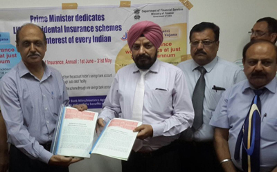JAMMU, May 7: The Life Insurance Corporation of India today signed MoU with The Jammu Central Cooperative Bank Ltd at Corporate Hqrs Sehkari Bhawan for providing Life Insurance Coverage to savings bank account holders of the bank under the Pradhan Mantri Jeevan Jyoti Bima Yojana.