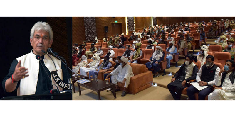 Lieutenant Governor Manoj Sinha addressing a delegation of Gujjar Bakerwal & Gaddi-Sippi communities in Srinagar on Saturday.