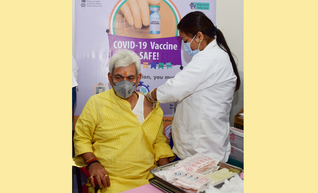 Lieutenant Governor Manoj Sinha getting COVID vaccine in the GMC Jammu on Thursday. By Daily Excelsior - March 5, 2021 Share FacebookTwitterWhatsAppPinterestLinkedinCopy URLTelegramEmailTumblrReddItPrintKoo Lieutenant Governor Manoj Sinha getting COVID vaccine in the GMC Jammu on Thursday. Lieutenant Governor Manoj Sinha getting COVID vaccine in the GMC Jammu on Thursday. Follow our WhatsApp channel