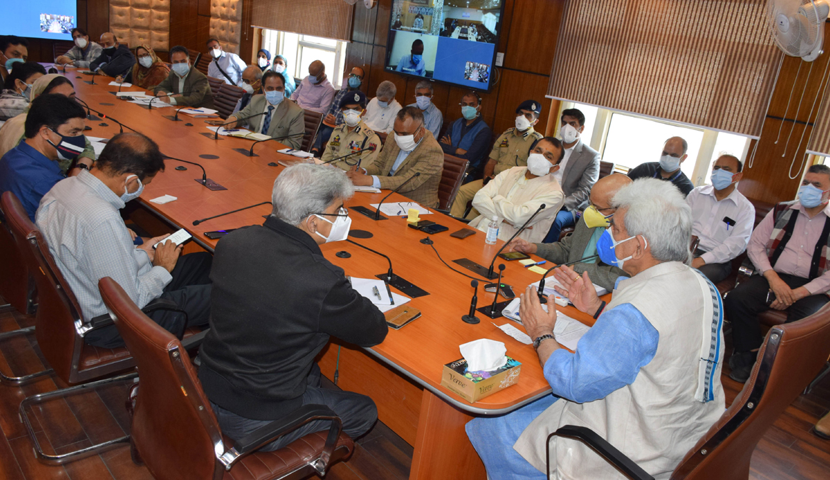 Lieutenant Governor Manoj Sinha reviewing COVID situation in Srinagar on Wednesday. By Daily Excelsior - May 6, 2021 Share FacebookTwitterWhatsAppPinterestLinkedinCopy URLTelegramEmailTumblrReddItPrintKoo Lieutenant Governor Manoj Sinha reviewing COVID situation in Srinagar on Wednesday. Lieutenant Governor Manoj Sinha reviewing COVID situation in Srinagar on Wednesday. Follow our WhatsApp channel