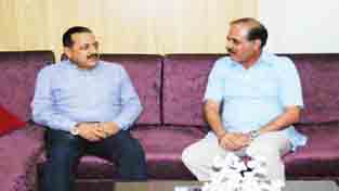 Lieutenant Governor of Andaman & Nicobar with additional charge of Puducherry, Lt. Gen. A.K. Singh calling on Union Minister Dr Jitendra Singh at New Delhi on Sunday.