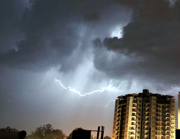 Lightning over Jammu City on Tuesday night.  -Excelsior/Rakesh