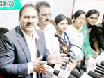 Sanjay Saraf, National President, LJPY expressing his views during a press conference in Jammu on Tuesday. -Excelsior/Rakesh