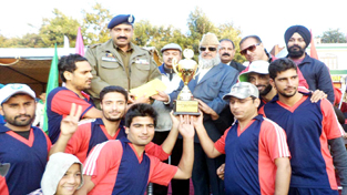 LOC team posing alongwith the dignitaries after lifting Shaheed Manjeet Singh T20 title in Poonch.