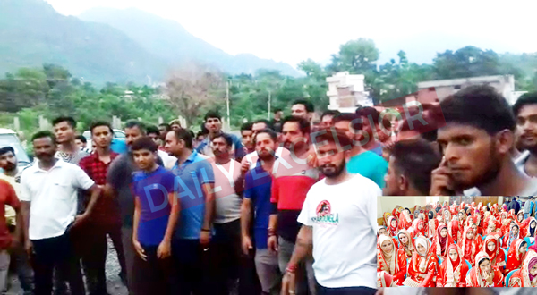 Local protesting against Health Deptt and District Administration in front of DH Reasi as no treatment was provided to injured of Siar Baba incident. -Excelsior/Karandeep