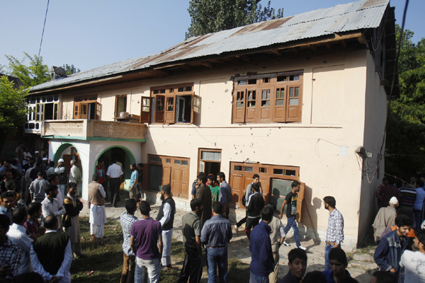 Home home slider left Locals looking at the bullet-ridden house after an encounter between security forces...