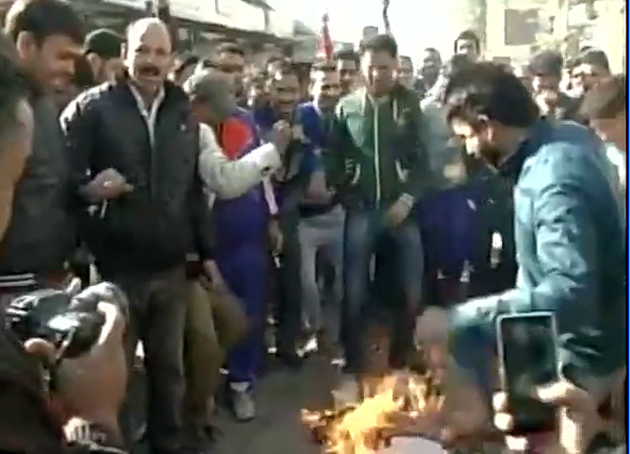 PATHANKOT : A protest broke out in Pathankot town today with the locals burning an effigy of Pakistan following the terror attack on Air Force base here.