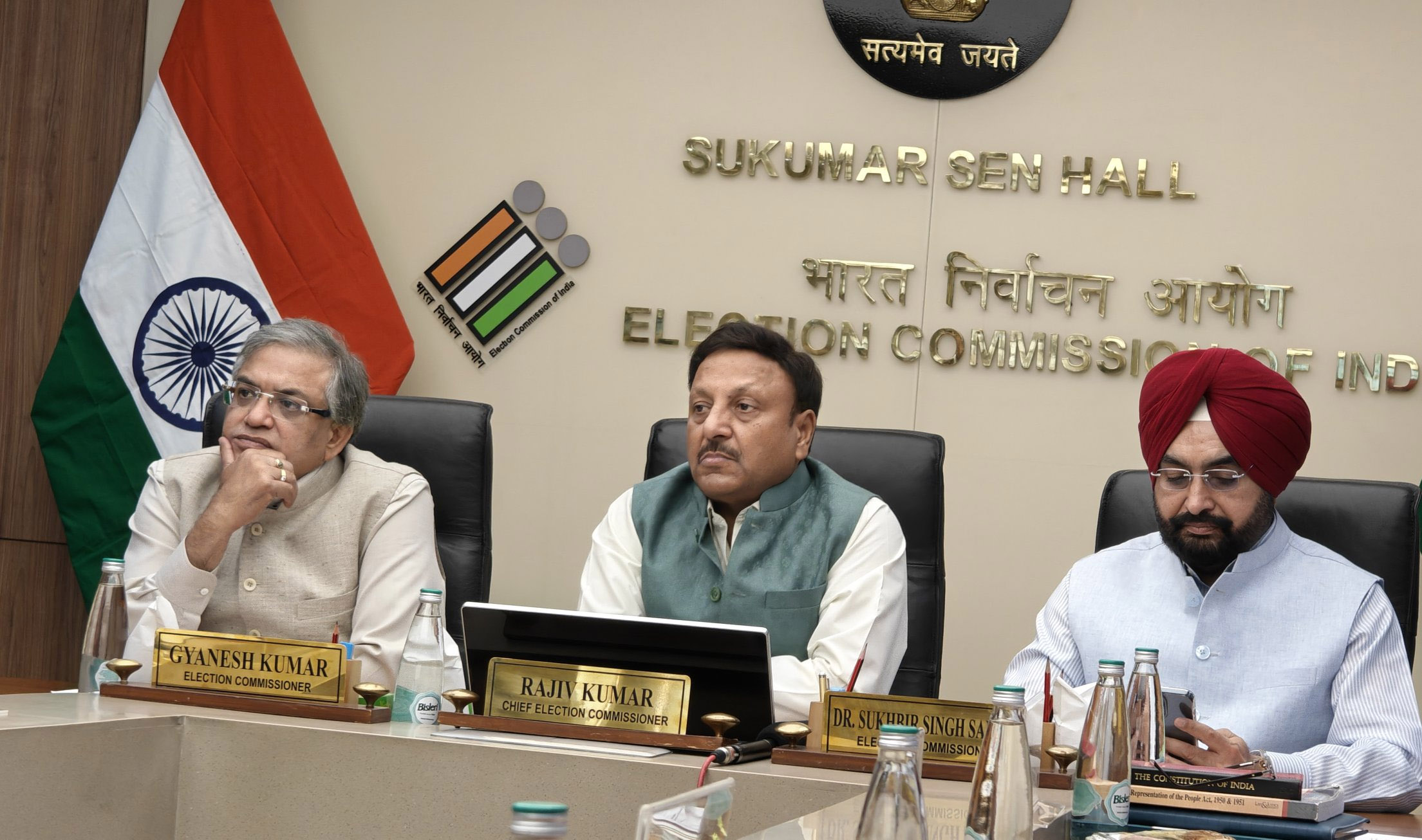 Chief Election Commissioner Rajiv Kumar, along with Election Commissioners Gyanesh Kumar and Sukhbir Singh Sandhu chaired the meeting.