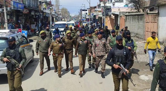 SRINAGAR, Mar 30: The security forces conducted flag marches across the Kashmir Valley on Saturday to instill a sense of security and confidence among the voters ahead of the Lok Sabha elections, officials said.