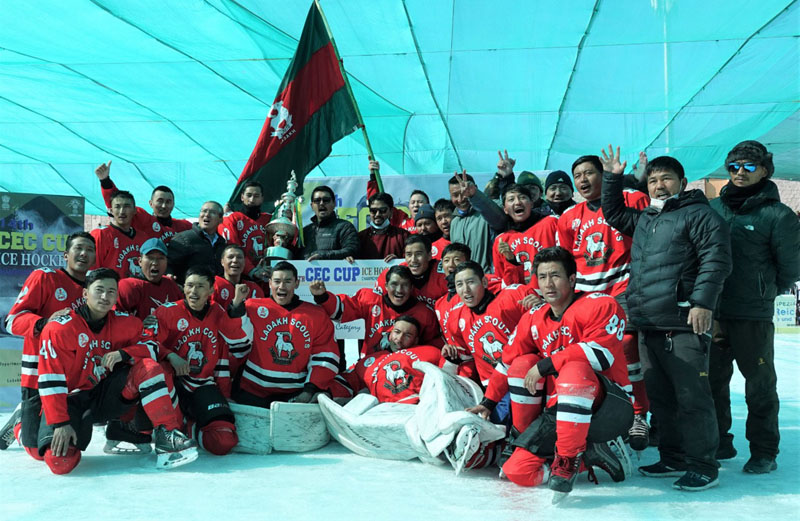 The tournament was organised by District Youth Services & Sports in collaboration with Ladakh Winter Sports Club, Leh. Despite a dominant performance from the team of ITBP in the beginning, it was LSRC Red who sealed victory in the end and lifted up the 14th CEC Cup Men’s Ice Hockey Championship 2021.