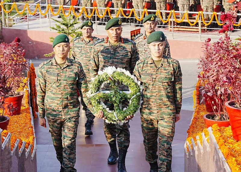 JAMMU, Dec 16: On the occasion of Vijay Diwas today, Lt Gen Pratik Sharma, Army Commander Northern Command, paid rich tributes to the brave soldiers of the Indian Armed Forces who fought in the 1971 Indo-Pak war.