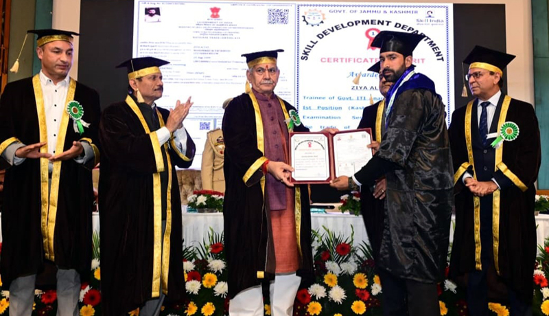Aftab Malik, Chairman, District Development Council Srinagar; Dr Nazir Ahmed Ganai, Vice Chancellor SKUAST Kashmir; Vice Chancellors of various Universities, senior officials, Heads of ITIs and Polytechnics, teachers, and the parents of the graduating students were present.