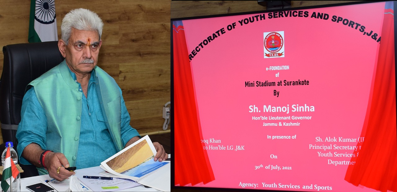 Jammu, July 30: Lieutenant Governor, Manoj Sinha today e-inaugurated and laid e-foundation of sports infrastructure projects worth Rs 18.10 cr and dedicated the new sports facilities to the local youth.