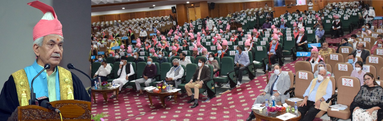 SRINAGAR, Aug 25: The responsibility of building a great nation and a prosperous Jammu & Kashmir rests on the shoulders of our youth. Bright young minds are the only force capable of building a peaceful, progressive and prosperous community, said the Lieutenant Governor, Manoj Sinha while addressing the Special Convocation of the University of Kashmir.