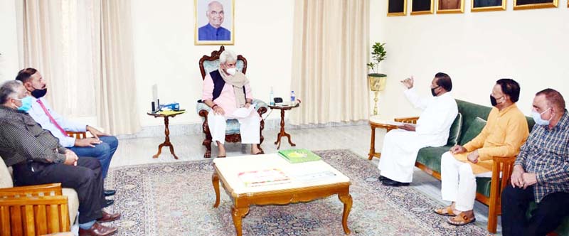 Lt Governor Manoj Sinha interacting with a delegation at Raj Bhawan Jammu. By Daily Excelsior - November 10, 2020 Share FacebookTwitterWhatsAppPinterestLinkedinCopy URLTelegramEmailTumblrReddItPrintKoo Lt Governor Manoj Sinha interacting with a delegation at Raj Bhawan Jammu. Lt Governor Manoj Sinha interacting with a delegation at Raj Bhawan Jammu. Follow our WhatsApp channel