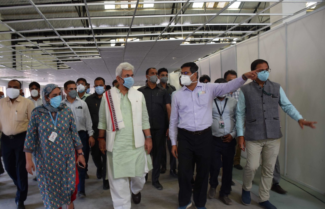 Lt Governor Manoj Sinha visits DRDO’s 500-bedded under-construction Covid Hospital at Khonmoh
