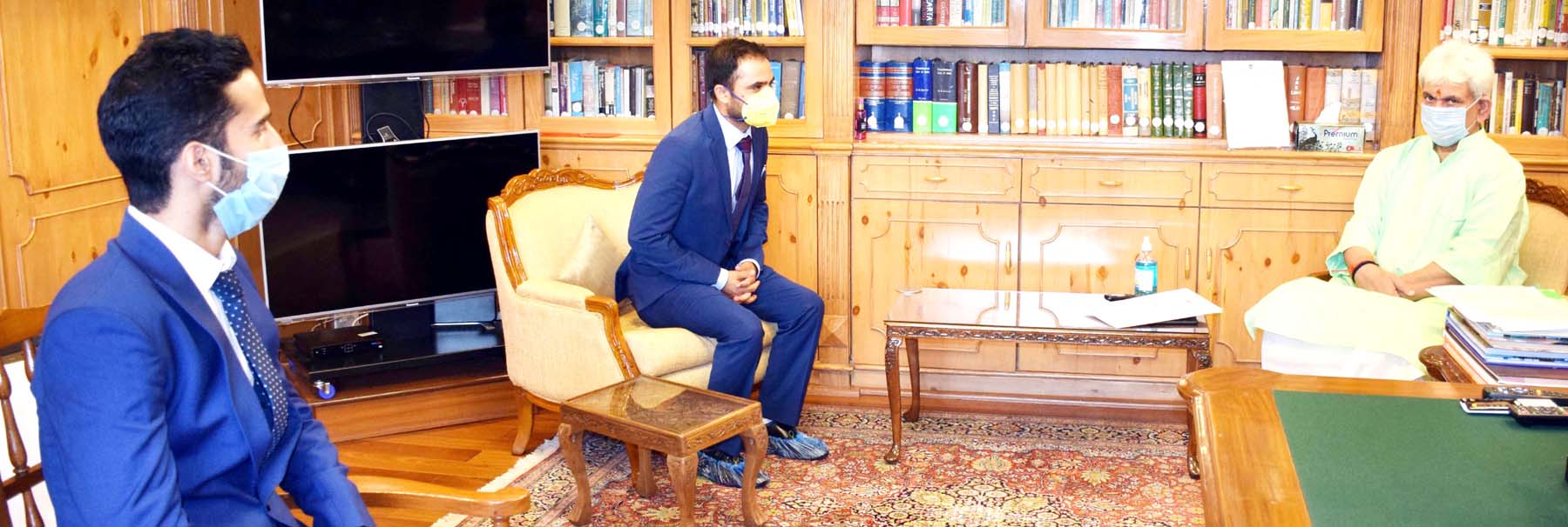Sabzar Ahmad Ganie hailing from Kokernag, Anantnag and Rayeas Hussain from Gurez, Bandipora met with the Lt Governor.