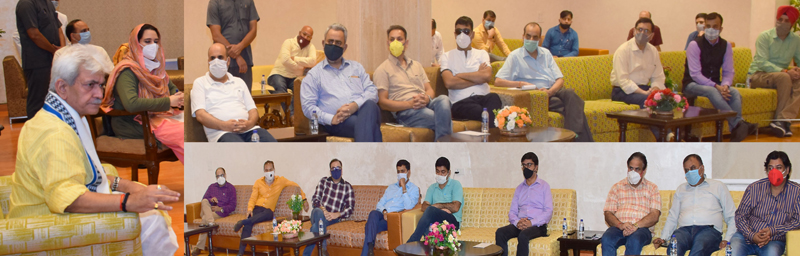 The media delegation which interacted with the Lt Governor comprised: Sominder Koul, Bureau Chief, ANI; Gursimran,Correspondent, Republic TV; Sunil Ji Bhat, Special Correspondent, India Today, Aaj Tak; Vinod Kumar, Bureau Chief, Gulistan News; Manoj Koul, Editor, Network 18; Ajay Bachloo, Bureau Chief, ABP News; Ravi Krishan Khajuria, Bureau Chief, Hindustan Times; Arun Joshi, Senior Resident Editor, The Tribune; Sanjay Khajuria, Correspondent, Times of India; Anil Gakkhar, Local News Editor, Jagran; Arun Sharma, Bureau Chief, The Indian Express; S.P. Sharma, Bureau Chief, The Statesman; Anil Bhat, Bureau Chief, PTI; Vishal Bharti, Bureau Chief,UNI; Vikrant, Station Head J&K, 92.7 FM; Sumit Kakkar, Station Head J&K, Radio Mirchi FM; Ashwani Kumar, President Press Club of Jammu; Neeraj Rohmetra, Editor, Daily Excelsior; Munish Gupta, Editor Early Times; Capt. Murti, Editor, Greater Jammu, Rahul Bansal, Editor, The News Now; Iqbal Hussain, Editor, Udaan; Zafar Choudhary, Executive Editor, The News Now; and Ahmad Ali Fayaz, Sr. Journalist.