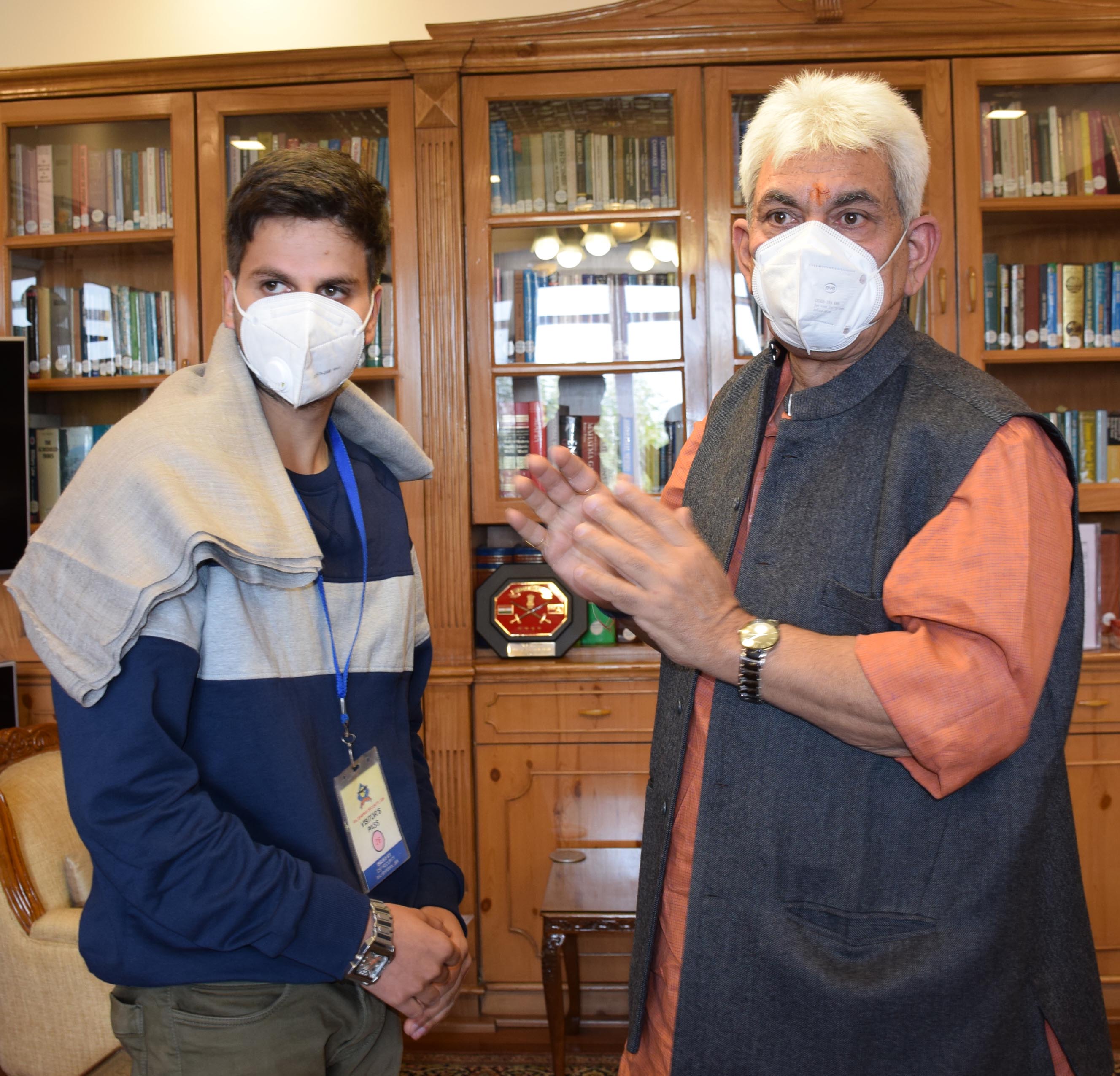 Srinagar: Lieutenant Governor, Manoj Sinha met J&K NEET topper Basit Bilal Khan here at the Raj Bhavan today.
