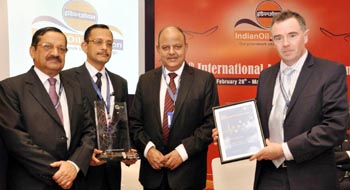 M Nene (3rd from left), Director (Marketing), Indian Oil and R Sareen (extreme left), Executive Director (Aviation), Indian Oil, receiving Air BP’s Global Operational Excellence Award- 2012 from Prasad Ayyakad, Regional Operations and HSSE Manager, Air BP (Dubai) and Peter Gallen, Senior Business Development Manager, Air BP (UK). Indian Oil was conferred the Global Operational Excellence Award by ASir BP, Indian Oil’s strategic partner for more than 15 years. The award has been bestowed on Indian Oil for its innovative approach.