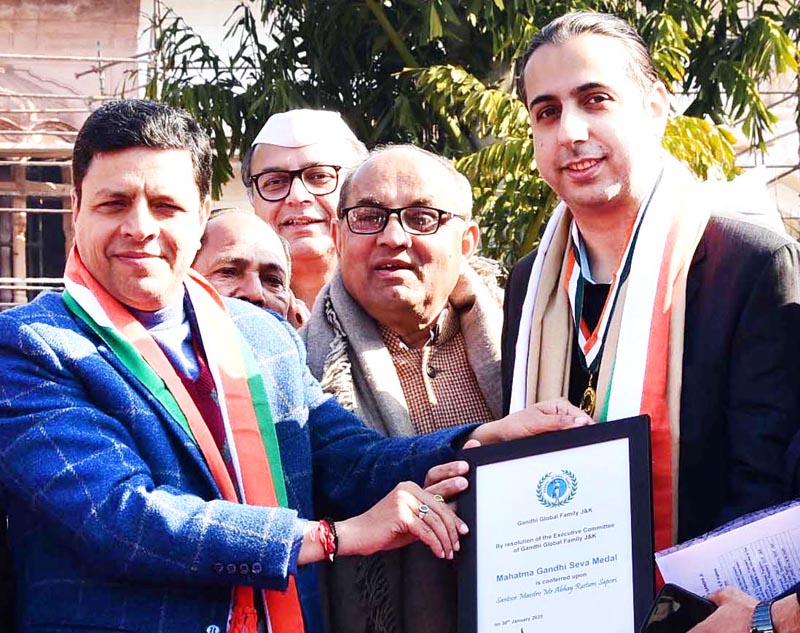JAMMU, Jan 31: Famous Santoor Maestro and Music Composer Abhay Rustum Sopori has been awarded the prestigious Mahatma Gandhi Seva Medal by the Gandhi Global Family (GGF), which is United Nations Department of Global accredited Peace NGO in India, and propagates the ideologies of Mahatma Gandhi among youth.