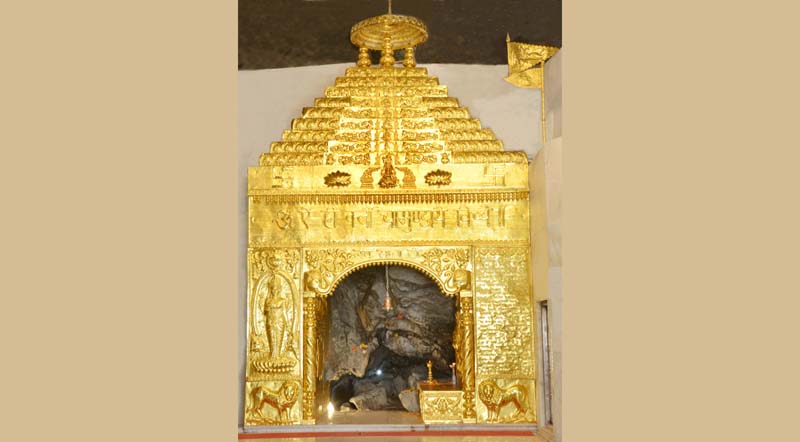 Magnificent view of newly gold plated entrance of the traditional cave of Shri Mata Vaishno Devi Ji which will be dedicated for darshan during ensuing Navratras.