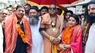 Maha Mandleshwar & Devi Maa during an environment yatra at Jammu on Friday.
