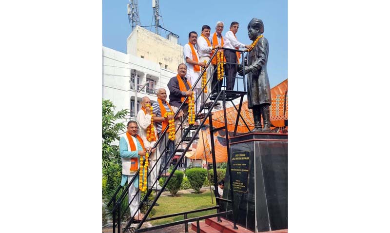 In this connection, Jammu Central Mahajan Sabha organized a programme at Lala Hans Raj Park, situated at Gurdawara Sunder Singh Road, Jammu where a number of prominent persons paid their tributes by garlanding the statue of Lala Hans Raj Mahajan.