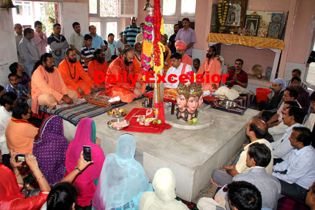 Mahant Deependra Giri along with devotees performing traditional ‘Chhari-Puja’ on the occasion of Nag-Panchami at Dashnami Akhara at Srinagar.Excelsior\Shakeel-ul-Rehman