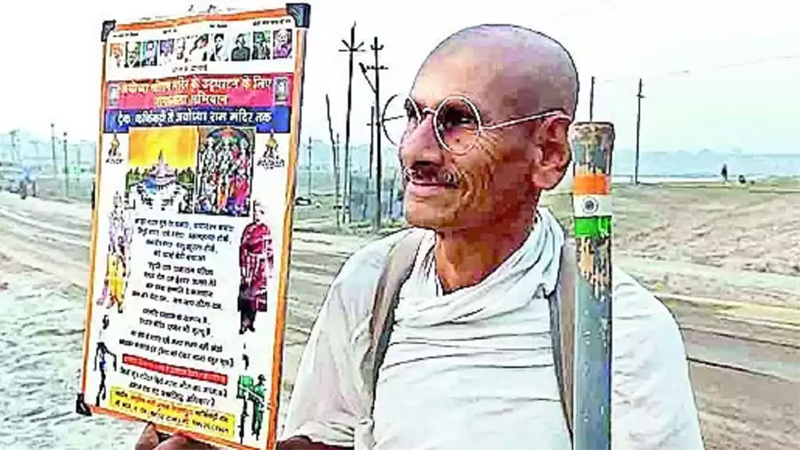 Mahatma Gandhi’s doppelganger reaches Ayodhya on foot, hogs limelight