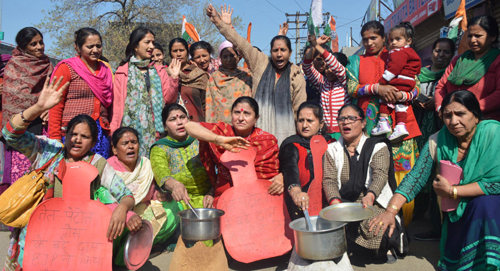 JAMMU, Feb 13: Activists of Pradesh Mahila Congress under the leadership of its president Indu Pawar (Ex-MLA) today held protest against hike in the prices of essential commodities in general and fuel in particular here today.