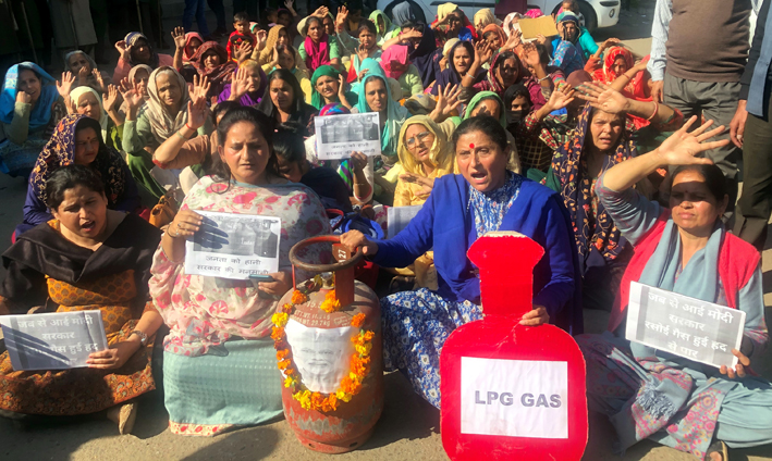 JAMMU, Feb 15: Pradesh Mahila Congress today staged protest against BJP Govt for its alleged failure in controlling prices of essential commodities, especially the LPG cylinder.