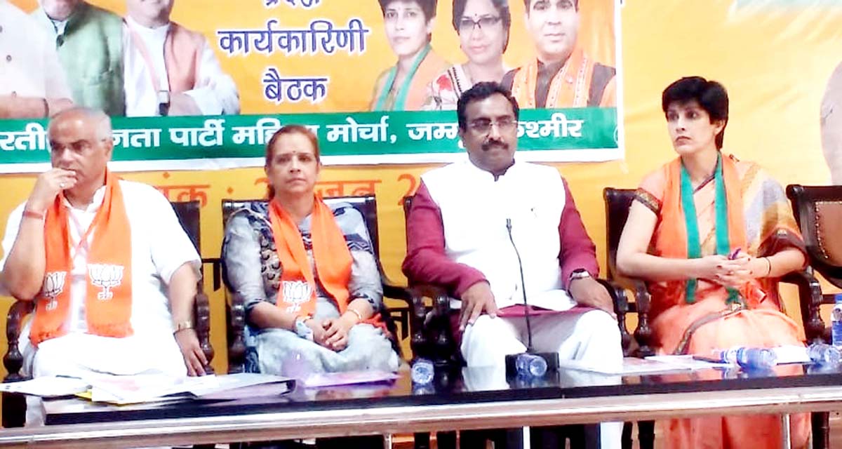 BJP State president Ravinder Raina along with Morcha State president, Rajni Sethi, State general secretary (Org.), Ashok Kaul, former Dy. CM Kavinder Gupta and BJP senior leader Usha Choudhary.