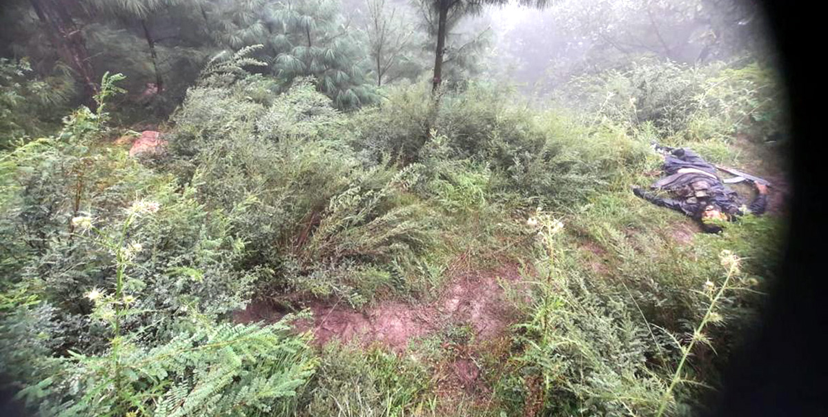 “Incriminating materials, arms and ammunition including 2 AK-47 rifles, 1 chinese rifle M-16 (9mm), 7 AK-47 magazines, 192 rounds of AK-47, 2 M-16 (9mm) magazines, 30 rounds of 9mm, 1 bag with Pakistani marking, 3 ammunition pouches, 4 cigarettes packets, 11 apples and dry fruits etc. have been recovered from the site of encounter,” he said.
