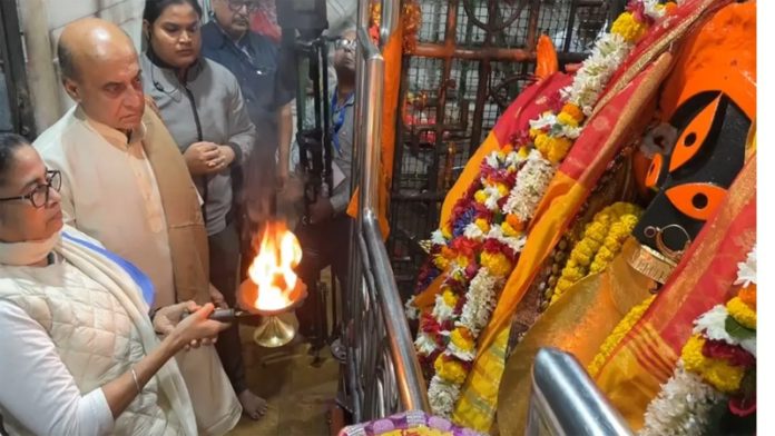 Mamata visits Kalighat temple on Navami