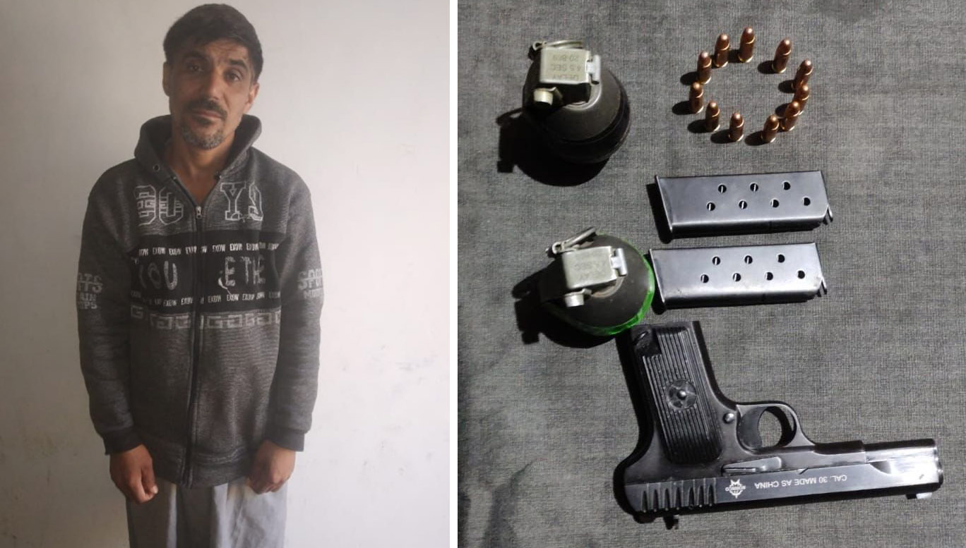 He said that on questioning, Shafi revealed that he has concealed some arms and ammunition in a Sewing machine in his house. On Shafi’s disclosure 01 Pistol, 02 Pistol Magazines , 11 Pistol rounds and 02 live Garnades were recovered during the search and he was taken into custody .