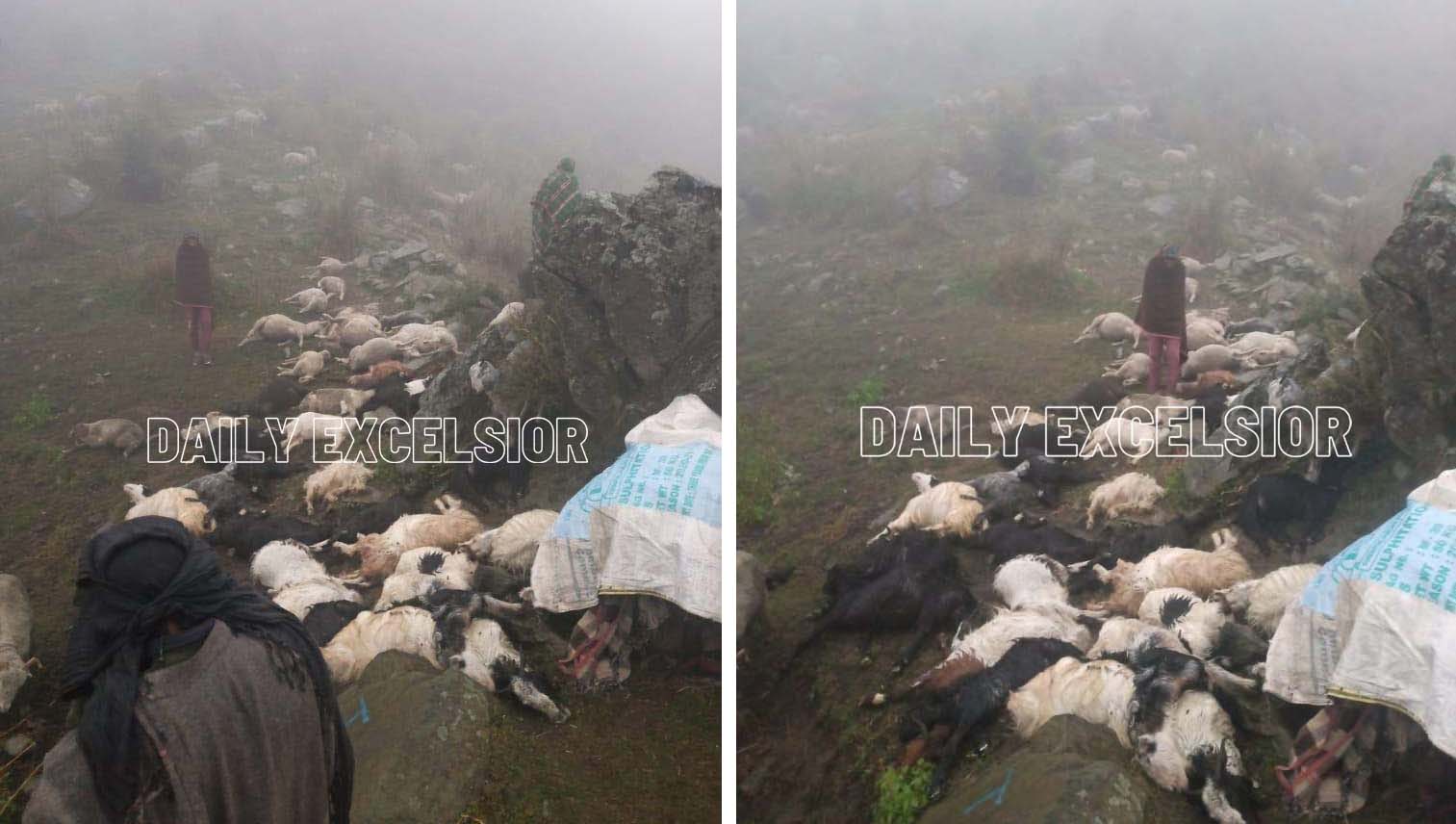 Police said that lightening struck a dhok (seasonal house) in Bari Behak area of Thanamandi in which three nomad families suffered loss as around fifty cattles of theirs got perished.