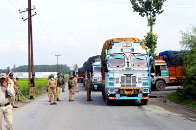 Police and CRPF was deployed in full strength at places wherever they apprehended protests on the Highway. The trucks that were in Srinagar, Pantha Chowk and Letpora areas were also moved towards Jammu. At some places protesters tried to block the National Highway but they were chased away by police and CRPF.