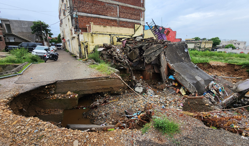 At Abubaker Colony falling under Bathindi, an old house constructed just at the bank of seasonal Nallah collapsed. A non- resident family was living in this house. During heavy rain as the flood water entered the house during early morning hours, the family escaped for safety. Later, the house collapsed. This Nallah caused damage to the walls and foundation of several other houses in the locality. The household goods of the family headed by Mohan Khushwah were damaged or washed away.
