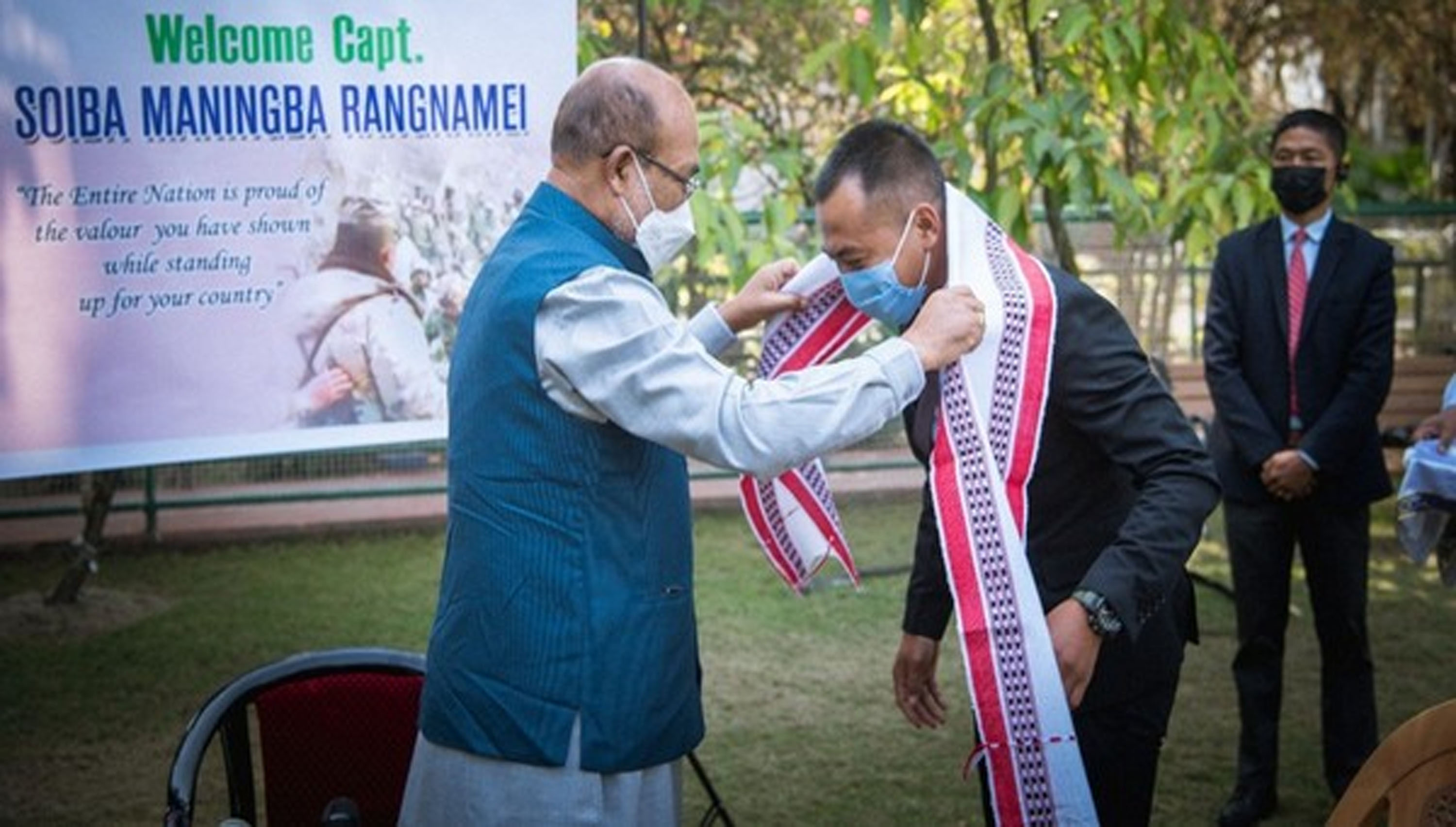 Manipur CM felicitates Captain Rangnamei for bravery at Galwan Valley