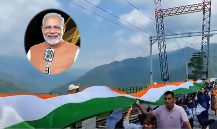 One of the most striking visuals, as mentioned by PM Modi, was from Jammu and Kashmir’s Reasi, where a Tiranga rally featured a 750-metre-long flag on the world’s tallest Chenab Railway Bridge.