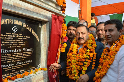 While addressing the gathering, Dr Jitendra Singh said the Government of India has laid special thrust on improving road connectivity scenario in J&K for which a whopping Rs 3600 crore has been sanctioned for 10th stage of the PMGSY scheme which is all time high. He said under the scheme a total of 73 roads will be constructed at an estimated cost of Rs 405 crore in district Kathua.