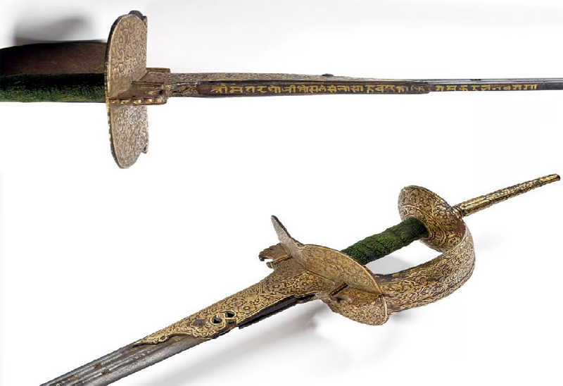 The sword is believed to have been taken outside India during the 1817 Battle of Sitabuldi, when the British East India Company defeated the Nagpur Bhonsles.