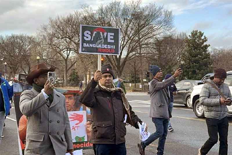 WASHINGTON, Dec 10 : A large number of Indian Americans held a march from the White House to the US Capitol over attacks on Hindus in Bangladesh.