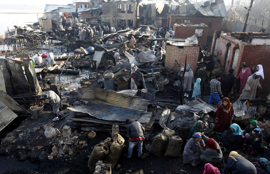 SRINAGAR, Dec 30: In a major fire in Srinagar’s Hazratbal area, around 30 residential houses were gutted, rending 55 families homeless in freezing winter.