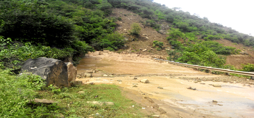 Massive landslides on Jammu-Srinagar National highway at Kheri, around 4 kms from Udhampur towards Kud on Wednesday.