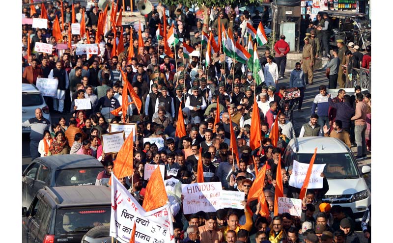 JAMMU. Dec, 10: A massive demonstration was organized by the people from all walks of life here today against the atrocities on Hindus and other minority communities in Bangladesh.