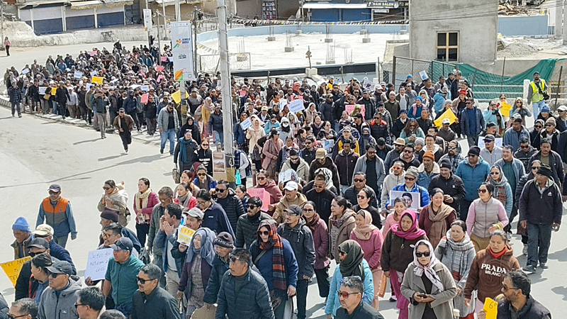 Led by LAB co-chairman Chering Dorjay, the protesters started from the Singay Namgyal Chowk and marched to Leh polo ground with participants, including a sizeable number of women, chanting slogans in support of the demands for Statehood and inclusion in the Sixth Schedule.